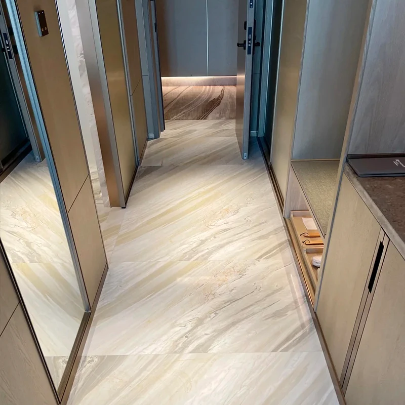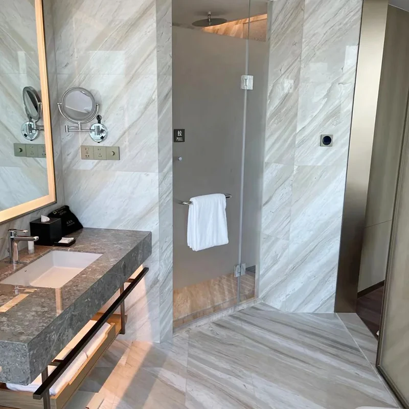 Rauhan, kylpylän kaltaisen kylpyhuoneen loman rakentamiseksi Ajax White Marble on ihanteellinen. Sen lempeät, virtaavat suonet antavat kaikille paikkalle vähän eleganssia ja auttavat luomaan avoimemman ja rikkaamman ilmapiirin. Valkoinen marmorinen kylpyhuoneen lattia tarjoaa sekä kestävyyttä että ikääntymätöntä kauneutta, joten se parantaa heti aluetta.