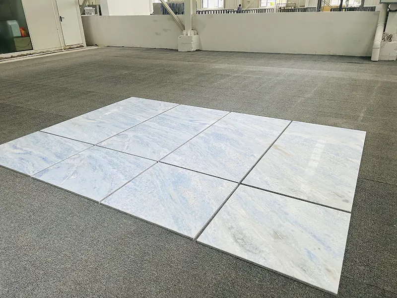 Me WoW Stone -tapahtumassa olemme ylpeitä siitä, kuinka emme vain myy raaka -aineita, vaan myös sitä, kuinka käytämme niitä uusien asioiden valmistukseen. Yksi parhaimmista ideoistamme on käyttää sinistä kristallimarmoria luonnollisen graniitin kanssa taustamateriaalina. Tämä menetelmä pitää sinisen kristallimarmorin kauneuden, samalla kun se kestää pidempään ja maksaa vähemmän.