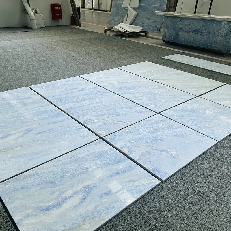 Sininen kristallimarmori on kova, upea ja yksinoikeus. Se muuttaa tavalliset tilat runsasiksi, kun sitä käytetään sisätilojen marmoriseinämänä. Se toimii myös taustavalaistujen marmoriseinien kanssa, jotta ulkoasu olisi entistä parempi.