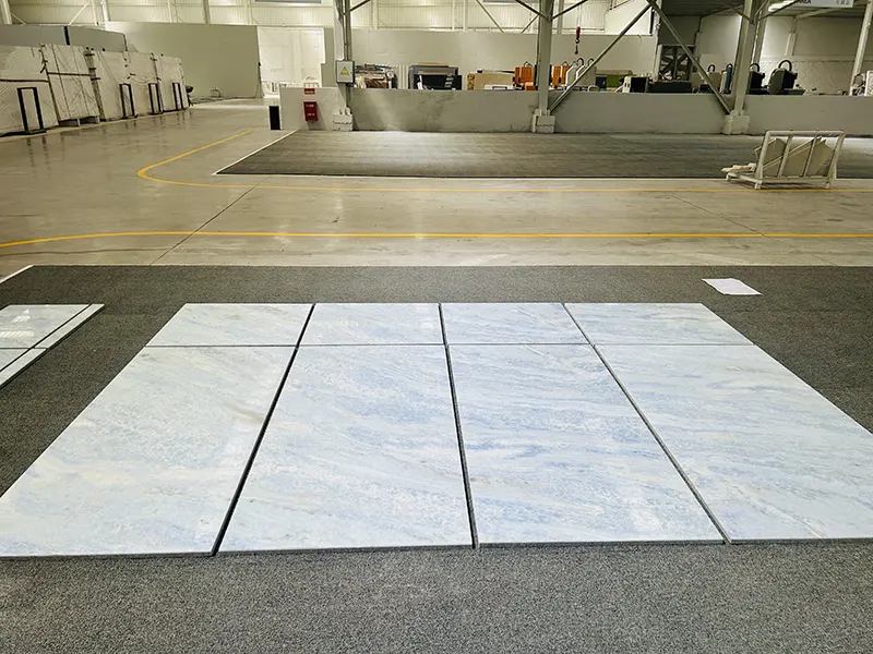 WOW Stone on yli 1000 neliömetriä sinistä kristallimarmorilevyä ja lohkoja käsillä, joten ne voivat käsitellä minkä tahansa kokoisia projekteja. Annamme sinun katsella levyjä videossa suoraan, jotta voit valita ne etäisyydeltä. Tämä on kätevää ja takaa, että kaikki voidaan ymmärtää. Tehdasmme sisältää moderneja laitteita ja ammattihenkilöstöä, joka on sitoutunut tekemään sen oikein ja korkealaatuisemmin.