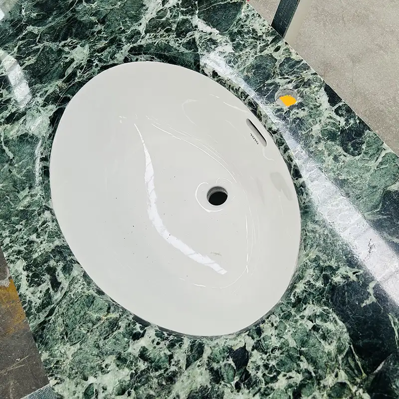 Mikä erottaa keisarinna vihreän marmorin muista vihreistä kivistä? Väri on tärkein asia. Vahva metsästäjävihreä, vaaleanvihreä ja norsunluun vining. Ei liian kirkas, ei liian tumma. Kuviot näyttävät ja tuntuvat vedestä virtaavan tai puun oksat. Koska jokainen keisarinna vihreä marmorilevy on ainutlaatuinen, jokainen siitä valmistettu laatta, alusta tai työtaso on myös ainutlaatuinen.