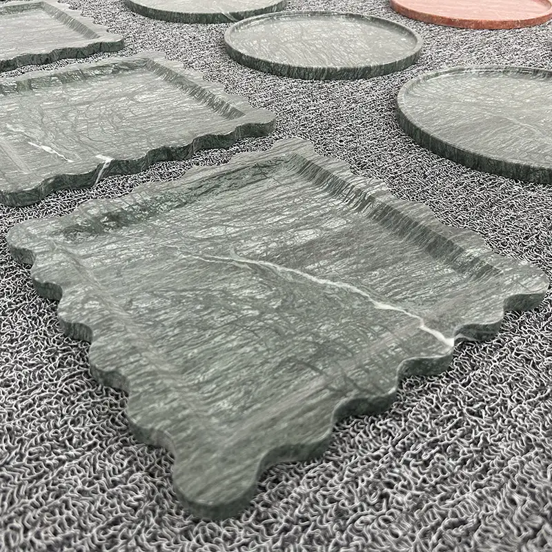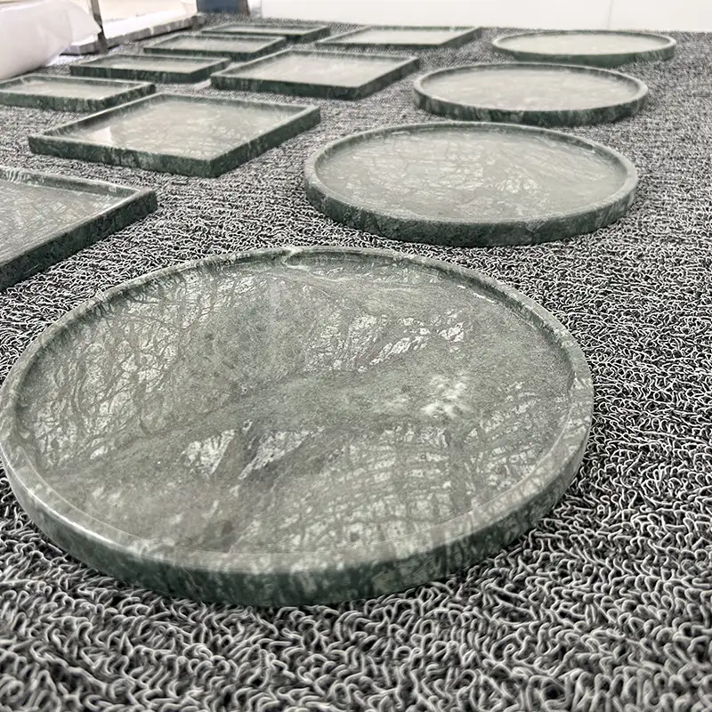 Se on todellakin hieno materiaali tarjottimille, koska se on pitkäaikainen, on sileä viimeistely ja on viileä kosketus, luonnollisesti. Ihmiset nauttivat keisarinnavihreästä marmoriastiasta, koska se on kaunis ja toimiva kotona.