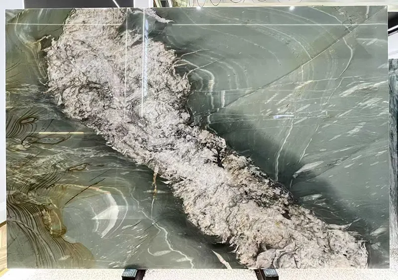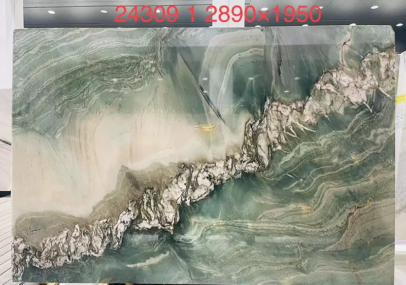 Brasilian, maestrovihreän kvartsiitin upeista maisemista - joka tunnetaan myös nimellä Brasilian vihreä kvartsiitti tai Brasilian vihreä kvartsiitti - on yksi yleisimmistä ja klassisista luonnollisista vihreistä kvartsiiteista, sen ainutlaatuinen väri on mesmeroitunut. Tämä tummanvihreä kvartsiitti liikkuu luonnollisesti sävyjen välillä kiven herkän kerrostettujen suonien mukaisesti. Se ei ole yksi sävy. Kuten luonnossa esiintyvä vesivärimaalaus, jokainen maestrovihreä kvartsiittilevy on ainutlaatuinen mestariteos.