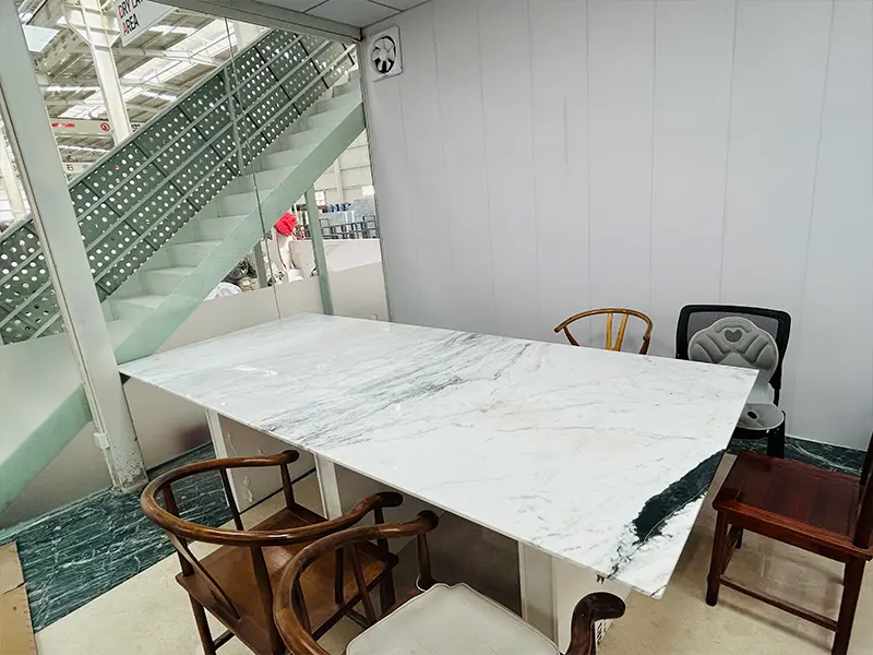 Tuotantotiimimme lisää jokaista marmoripöydän TOP: n elinaikaa lasitus- ja kypsytettyjen lakkotekniikoiden avulla. Tarjoamme perusteellisia räätälöintipalveluita, jotka kattavat digitaalisen suunnittelun ovella. Mukautamme jokaisen tuotteen tarkkaan tarpeeseesi, olipa kyse sitten tyylikkäälle toimistotaululle tai upealle Panda -marmorinen ruokapöytä talosi.