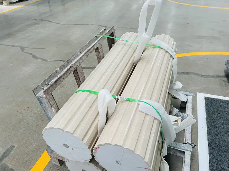 Ensimmäinen on sarakkeen yhdistäminen suurten marmorilaattojen kanssa. Tämä prosessi on halvempi, kevyempi ja yksinkertaisempi asennus. Se on erinomainen vaihtoehto asiakkaille, jotka haluavat marmorin ulkonäköä ilman kustannuksia. Asuin- tai kaupallisissa sisätiloissa se on myös täydellinen marmoriroman pylväiden tai koristeellisten marmoripilarien suunnitteluun.