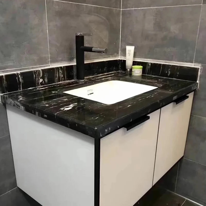 Silver Dragon Marble -yrityksestä valmistettu musta marmoritakka tarjoaa ikämätöntä vetovoimaa, jos haluat lisätä tyylikkyyttä työpaikallasi tai oleskelutilassa.