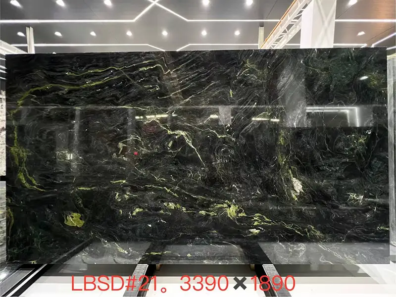 Brasilia on lähde joidenkin maailman kauneimmista luonnonkivistä, ja tämä on Brasiliasta. Juuri tämä rikas vihreä erottaa tämän toisistaan. Se ei ole liian vaalea tai liian mykistetty; Se on vain rikas, luonnollinen ja rauhallinen. Siinä on vaalean ja tumman vihreän aallot ja suonet, ja joskus se näyttää lehtien metsä- tai vuoristovirroilta. Tuntuu pala rehevästä metsästä, joka on kiinni.