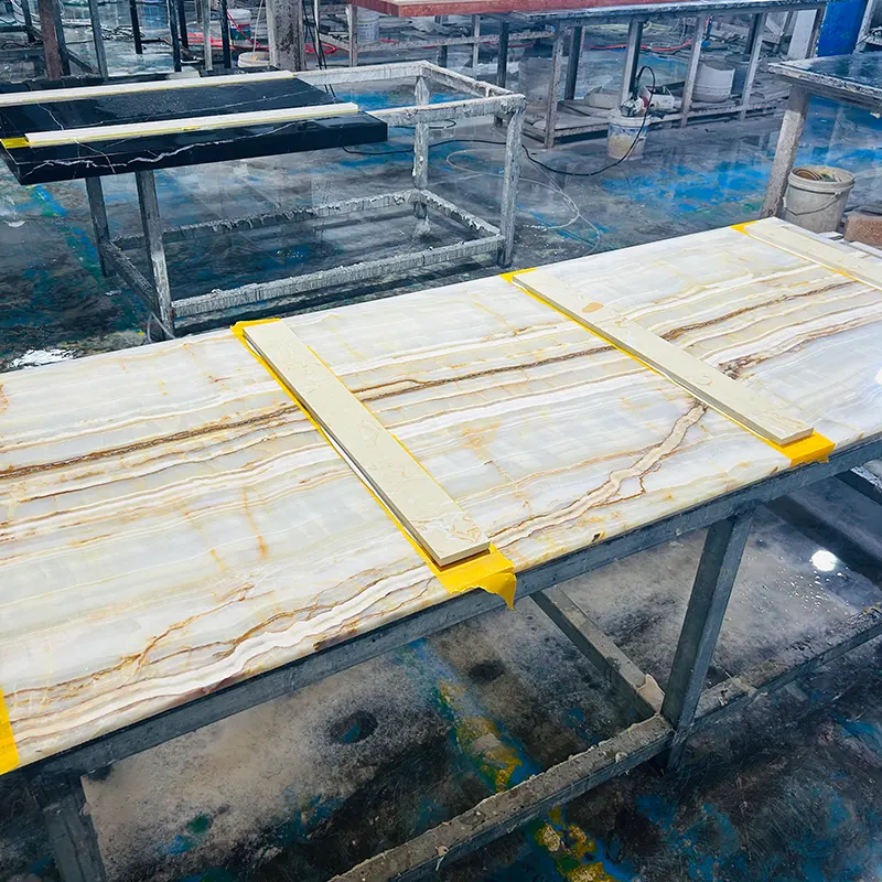 Valkoinen onyx on harvinaisin kivi, joka loistaa niin kauniisti luonnonkivien keskuudessa. Jumalallisen läpikuultavuuden ja kummittelun Veiningin vuoksi valkoisesta Onyxistä on tullut yksi suunnittelijoiden ja asunnonomistajien trendikkäistä valinnoista sekä ylellisyyttä jahdostaja ympäri maailmaa. Vertamattoman tyylikkyyden ja paremman suorituskyvyn vuoksi valkoisesta onyx -työtaso on nopeasti tulossa keittiön ja kylpyhuoneen keskipiste.