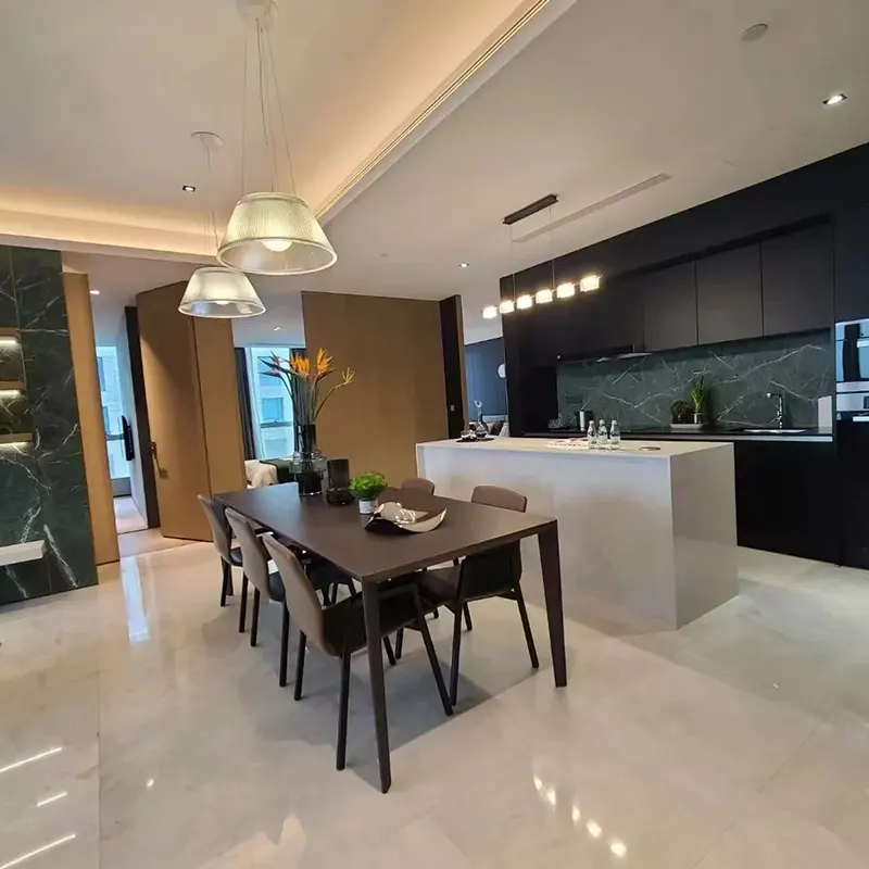Yabo valkoinen marmorilaatta on vain esteettisesti miellyttävä, mutta myös hyödyllinen keittiön laskureille ja backsplaseille. Keittiösaarten ja ympäröivien pintojen osalta valkoinen marmorilaatta toimii aivan hienosti. Kiven tukevuus takaa, että se kestää normaalia käyttöä ja pitää sen ylellisyyden.